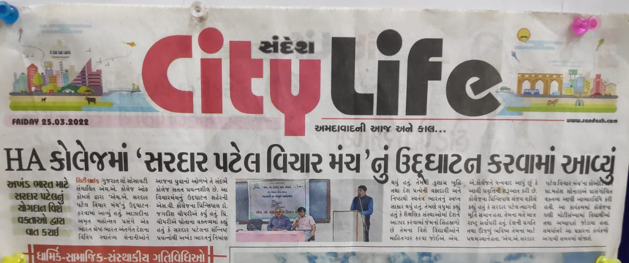 Sardar Patel to the students and continue to spread his importance the ‘H. A.